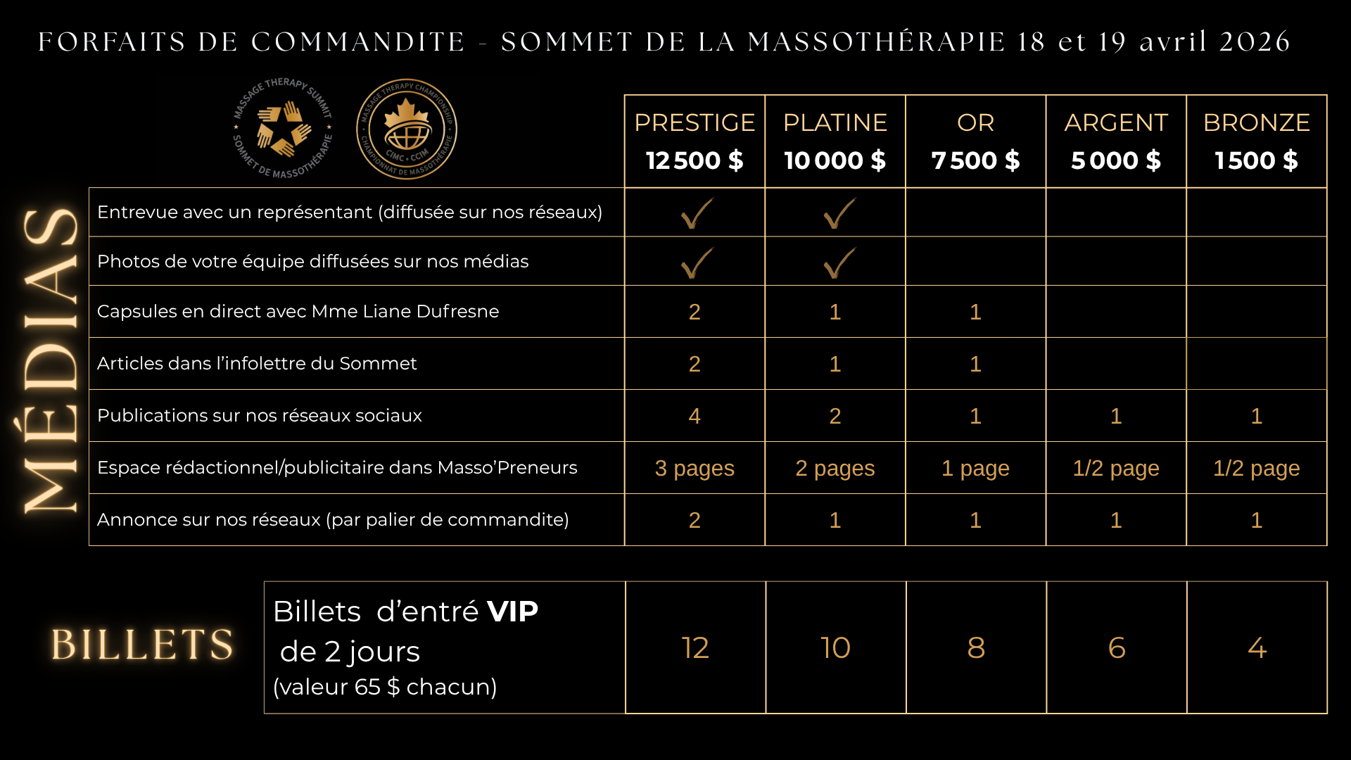 Cela offre une excellente opportunité de positionner sa marque et de renforcer son image de leader en matière de pratiques bien-être, de services et ou produits de qualité et d’excellence en s’affichant avec les experts et les “champions” de la massothérapie.