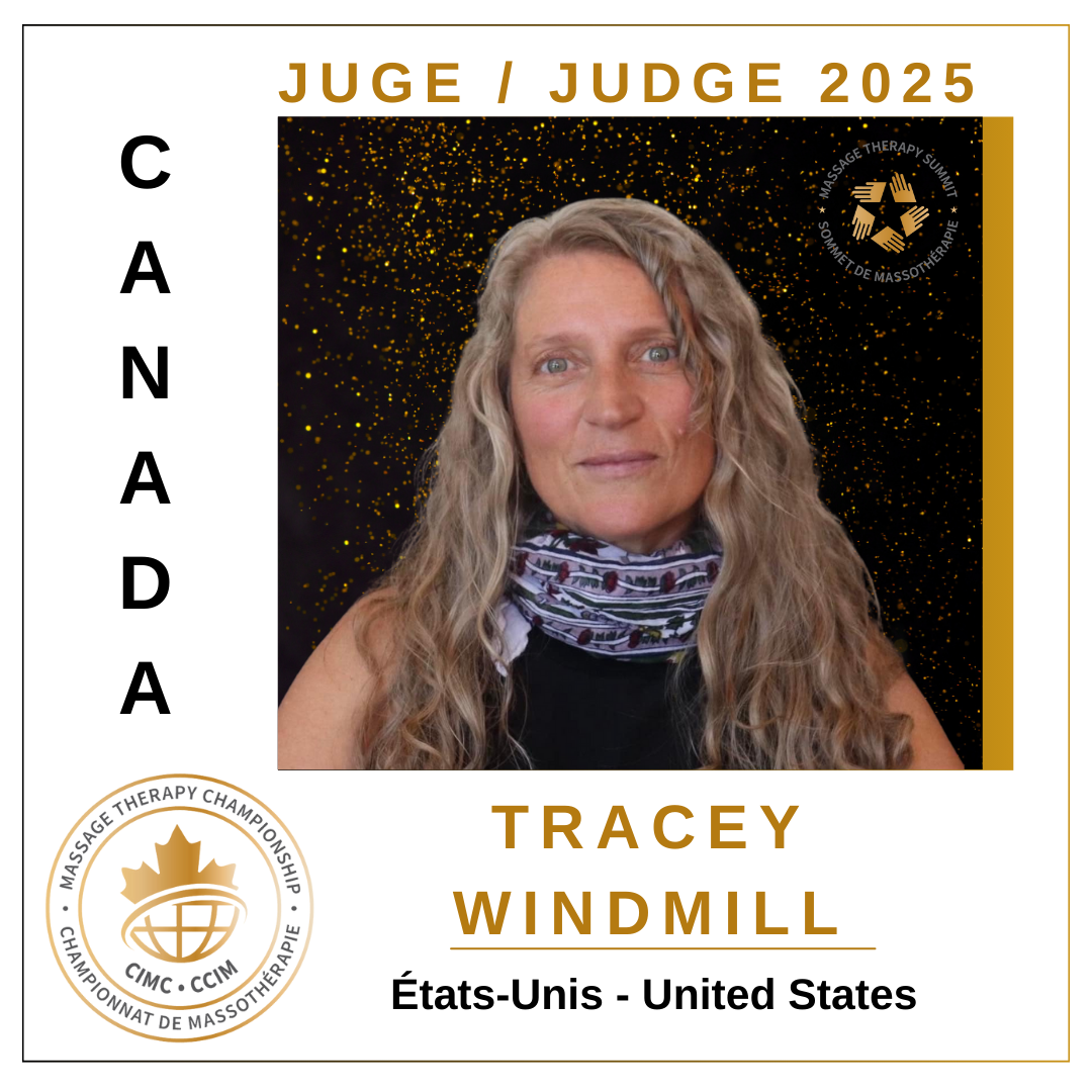 Tracey soutient aujourd’hui de nombreux championnats en acceptant le rôle de juge, notamment les championnats américains de massage et les championnats mondiaux de massage, ces derniers étant l’occasion pour elle de faire des démonstrations et d’enseigner une classe de maître.